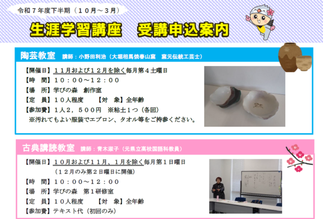 学びを通して交流を。令和7年度下半期の生涯学習講座開催【富岡町】
