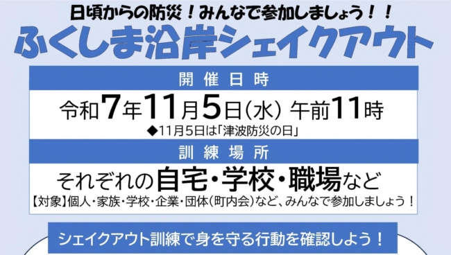 日頃からの防災を実践!「ふくしま沿岸シェイクアウト」に参加しよう