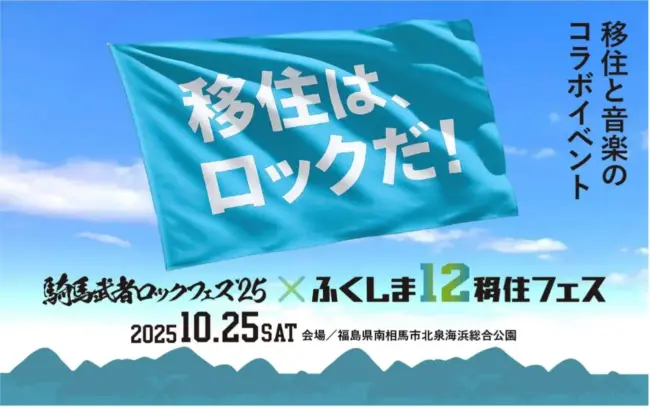 “音楽”と“移住”が融合する特別イベント「騎馬武者ロックフェス2025×ふくしま12移住フェス」が、10月25日(土)に南相馬市・北泉海浜総合公園で開催されます。福島12市町村の「住む」「働く」「楽しむ」魅力を、ライブやトークを通して体感できる1日です。