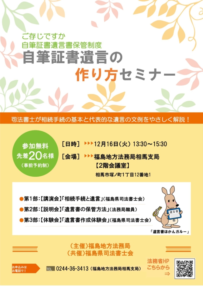 - 体験会「遺言書作成体験」(福島県司法書士会)
