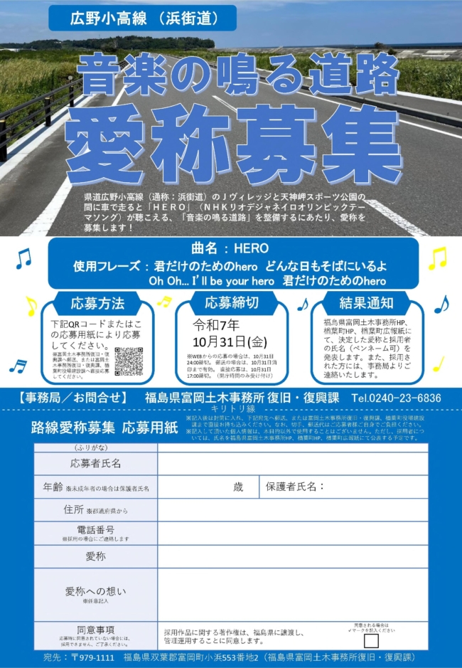 県道広野小高線「音楽の鳴る道路」路線愛称の募集について